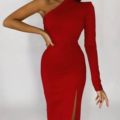 VESTIDO MAXI ELEGANTE DE UM OMBRO COM FENDA