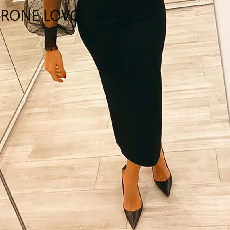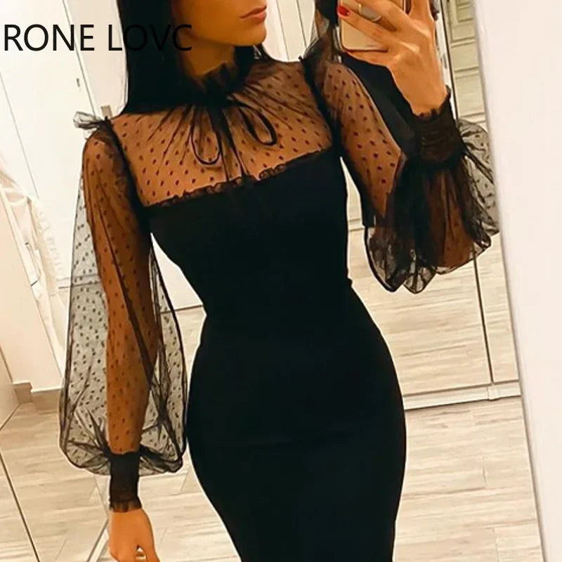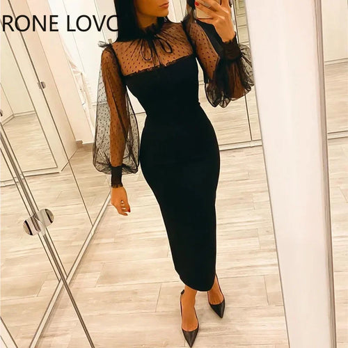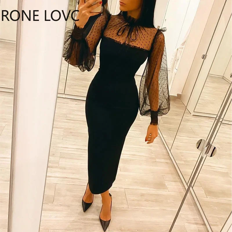 VESTIDO MIDI ELEGANTE GOLA ALTA COM LANTEJOULAS